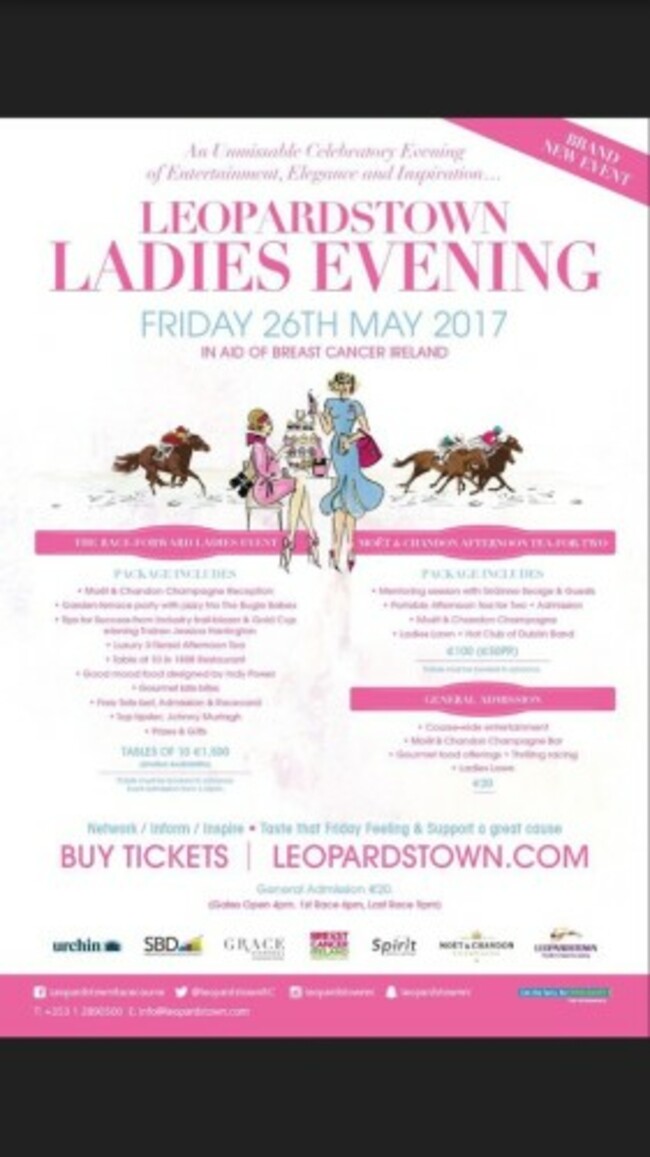 The event, Ladies Evening in association with Breast Cancer Ireland, will take place in conjunction with a race fixture at the venue in a move away from a best dressed competition.