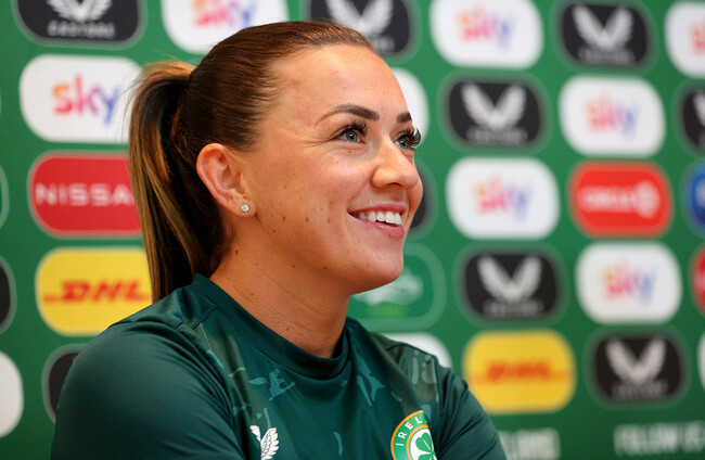 Ireland captain Katie McCabe at this morning's press conference. Ryan Byrne/INPHO