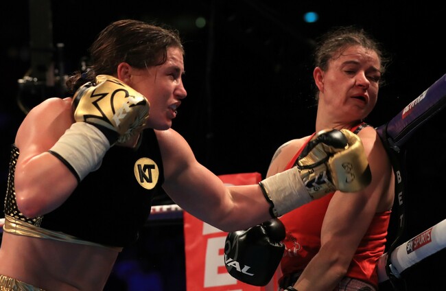 That pattern continued into the second, broken up by a big Taylor left hook less than a minute into the round, while the Bulgarian attempted to test the chin of her decorated foe with the Irishwoman walking through the few shots that landed.