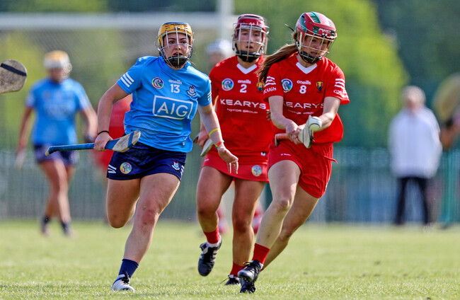 Cork’s Katie O'Mahoney with Elyse Jamieson Murphy of Dublin. Evan Treacy/INPHO