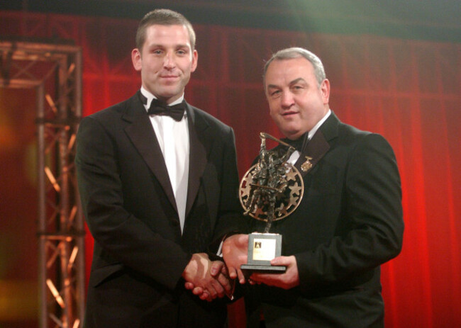 Here he is receiving a prized bronze statuette from former GAA President Nickey Brennan in 2007: