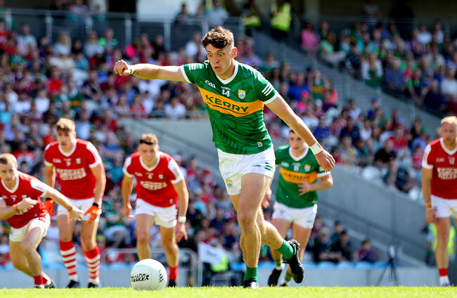 The opening period had been controlled by Kerry. After a recent slump from his high standards, Sean O’Shea provided a telling riposte with his form in the forward line. By the 20th minute he had four points to his name, firing over three from play and saw another effort denied by the woodwork.