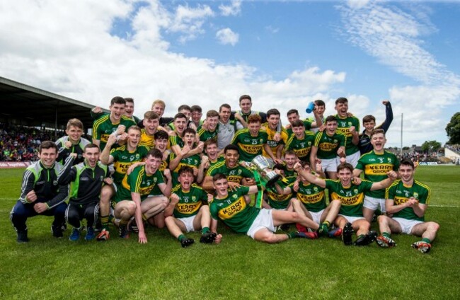Kerry minor players celebrating their victory today. Cathal Noonan / INPHO