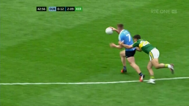 It was maybe a goal chance but in reality Dublin defended this very well from the situation they found themselves in. If Kerry could maintain that sort of success with long or diagonal balls, then great but it also lead to a lot of turnovers — eight in total.