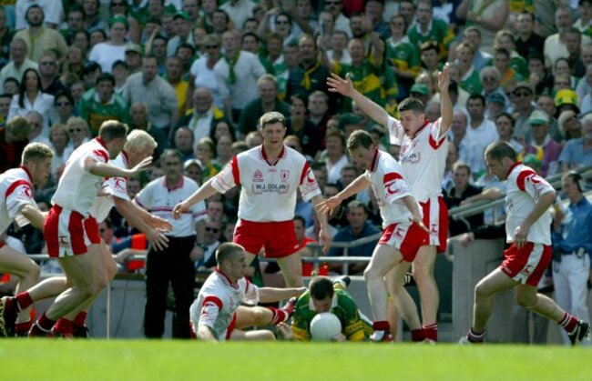 Tyrone celebrated their second All-Ireland title win in three years but it was an emotional occasion after the passing of Cormac McAnallen the year previous.