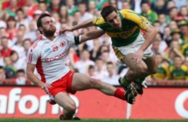 Tyrone's Martin Penrose and Kerry's Declan O'Sullivan will be bidding for success tomorrow. INPHO/Cathal Noonan