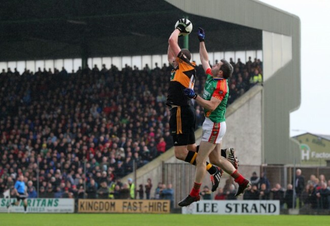 Donaghy rises above Mayo's Kevin McLoughlin Donall Farmer / INPHO Donall Farmer / INPHO / INPHO