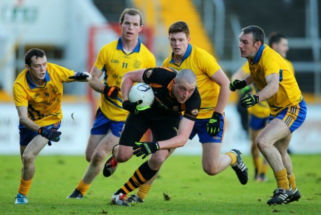 Donaghy surrounded by Clare players in Cusack Park Ryan Byrne / INPHO Ryan Byrne / INPHO / INPHO
