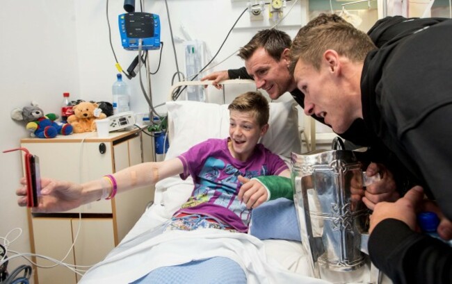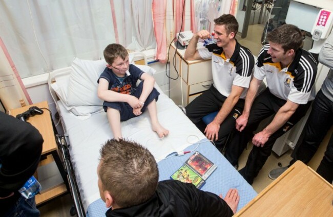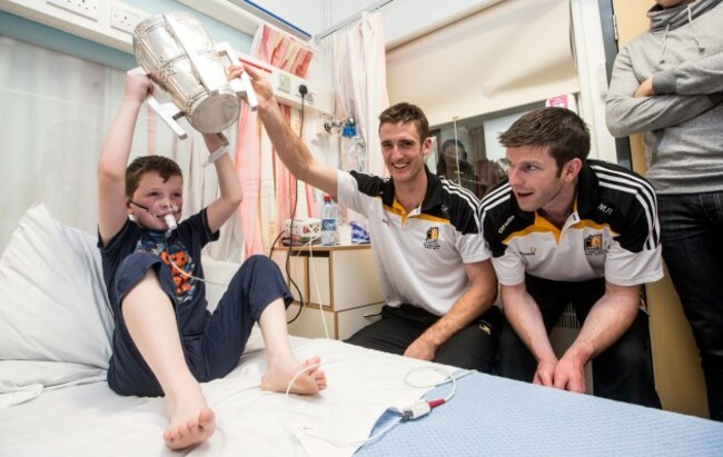 9. Kilkenny’s Kieran Joyce, Padraig Walsh and Cillian Buckley meet Cian Kelly, (13 years old) from Sallins, Kildare