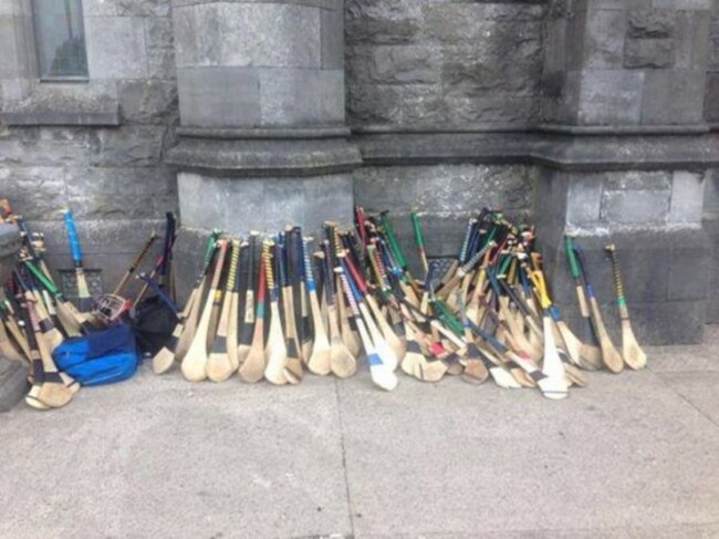 This picture was taken outside the Chapel at St Kieran’s college, for end of year Mass, and captioned: “We even bring our hurls to Mass!!”