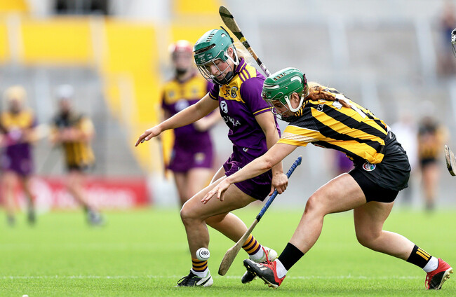 Wexford's Joanne Dillon and Collette Dormer of Kilkenny. Laszlo Geczo/INPHO