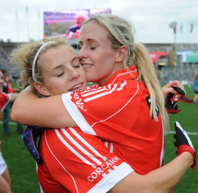 Valerie Mulcahy and Brid Stack celebrate after the game