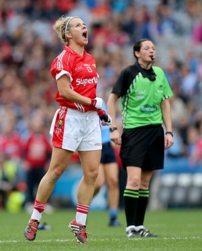 Valerie Mulcahy celebrates a late point for Cork