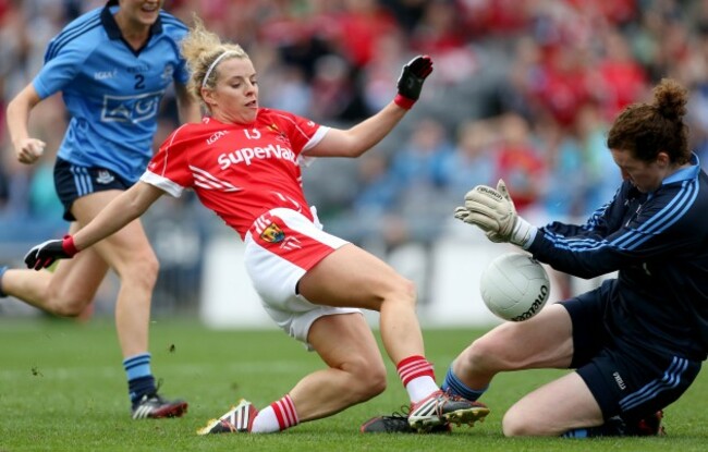 Cork’s Valerie Mulcahy battles with Leah Caffrey of Dublin