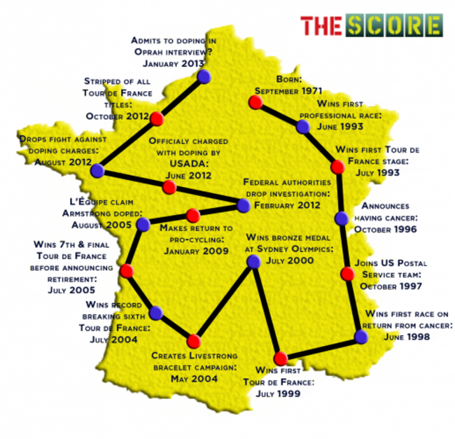 If you need reminding of the key markers on the Tour de Lance, here’s our handy “cut out and keep” roadmap of the entire doping saga.