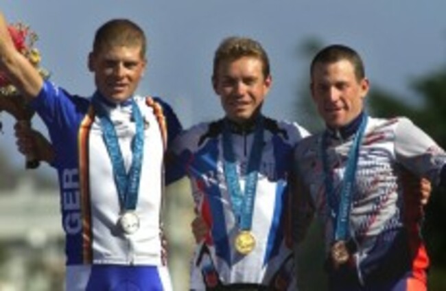 Armstrong finished third in the road time trial in Sydney behind winner and US Postal Service teammate Vyacheslav Ekimov of Russia and Jan Ullrich of Germany. Spanish rider Abraham Olano Manzano, who finished fourth in Sydney, will not be upgraded and the bronze medal will be left vacant in Olympic records.