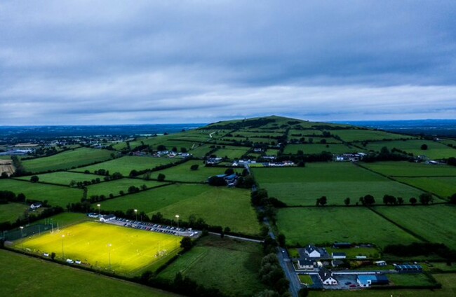 The Offaly Senior Football Championship game tonight under flood lights between @Clara_gaa_clu and @CappincurGAA with Croghan Hill in the background pic.twitter.com/lIH507rF5D