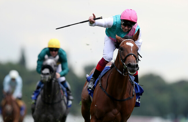 The first England or Ireland-trained three-year-old filly to win the race then produced a spectacular burst of speed to go around five lengths clear before easing off at the line.