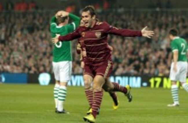 From there, the Russians struck once more, showing more fluent movement than Ireland could hope to handle. Sensing that Kevin Kilbane was farther from goal than he should have been, Roman Shirokov sent a marvellous ball down to Kerzhakov in the top-right corner. The Zenit St Petersburg forward cut across perfectly to feed Dzagoev – who bagged his first for Russia to cap a gorgeous move.