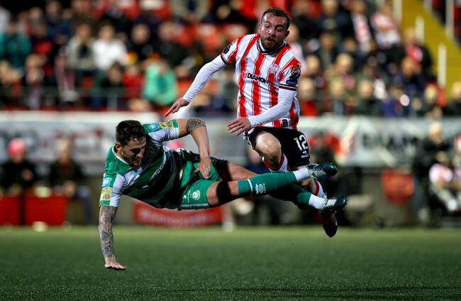 His dive last Friday night was one of desperation, and it looked like it too. He nipped in ahead of Josh Honohan and, as some might argue, began to fall in anticipation of some contact from the Shamrock Rovers defender.