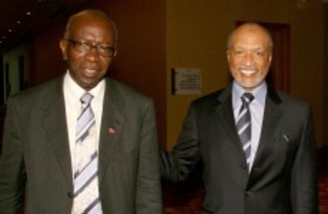Mohamed bin Hammam (right) had apparently offered $40,000 bribes to Jack Warner (left) in exchange for FIFA presidential votes, a leaked report claims. Shirley Bahadur/AP