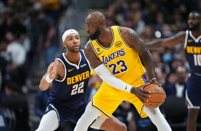 LeBron James in action against the Denver Nuggets. Alamy Stock Photo
