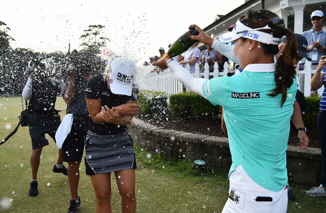 South Korean’s Ryu So-yeon and American’s Lexi Thompson and Angel Yin shared second on 280.