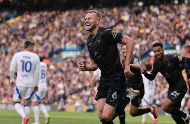 Swansea were handed a chance to level in the 14th minute, only for Illan Meslier to turn Josh Tymon’s penalty behind.