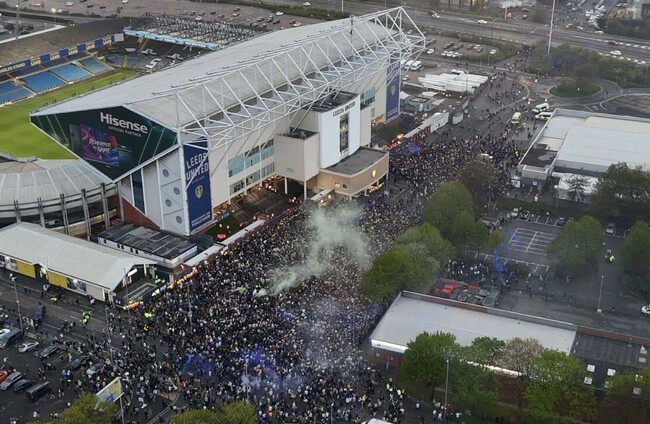 Leeds fans gathered outside the ground in their thousands to celebrate their top-flight return.