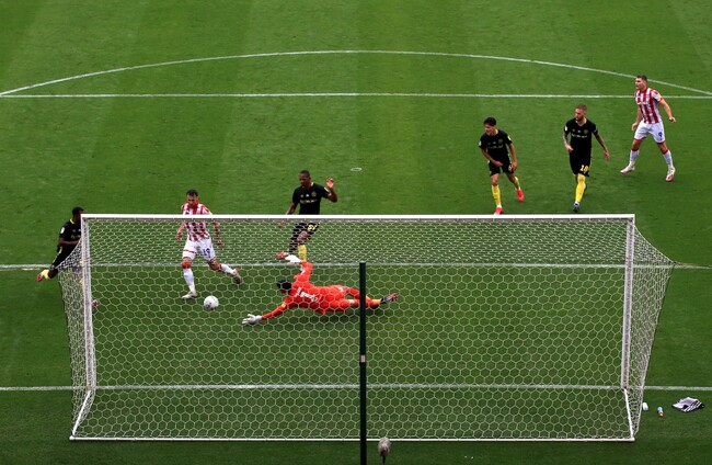 Having kept their opponents fairly quiet, Stoke then grabbed the lead as Raya’s parry from Clucas’ strike left a simple tap-in for Gregory.
