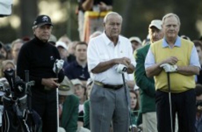 The proceedings got underway with Jack Nicklaus, Gary Player and Arnold Palmer all hitting their ceremonial first tee shots in the fairway. Mickelson, who had the day’s final tee time, was on hand in his green jacket to watch the legends hit their perfect shots.