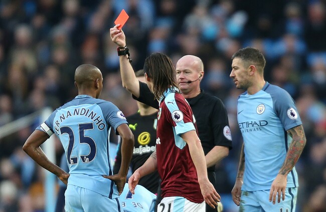 Pep Guardiola saw his Manchester City side overcome another red card for Fernandinho as they defeated Burnley while a late goal scoring spree saw Everton see off Southampton.