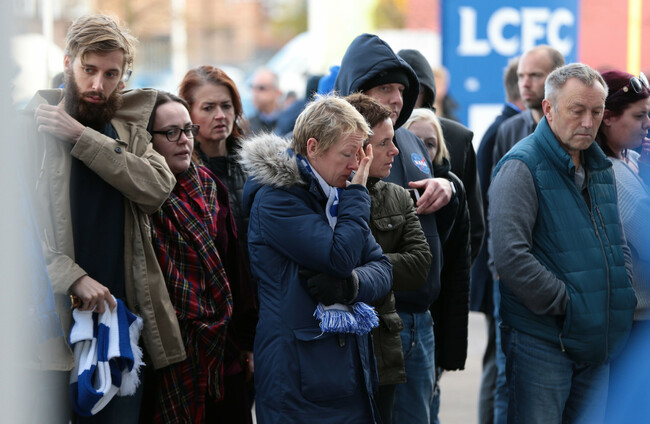 FANS LAID DOWN hundreds of football scarves, shirts and flowers outside Leicester City’s stadium on Sunday, a day after the club’s Thai billionaire owner died in a helicopter crash just outside the ground.