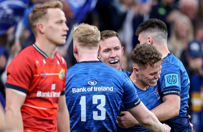 Having made wholesale changes to their matchday squad ahead of next weekend’s Heineken Champions Cup final date with La Rochelle, a youthful Leinster team underlined the quality available to Leo Cullen and Co with a performance full of fight and quality moments, making it an extremely uncomfortable evening for a Munster side which contained 11 of the team that started against Toulouse at this stadium two weeks ago.
