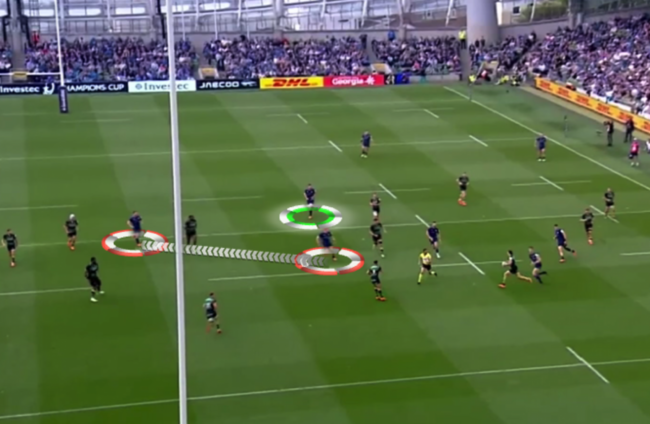 In simple terms, that means two possible defenders on Leinster’s left-hand side aren’t there for the next phase.