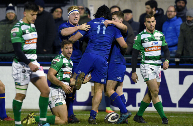 Lowe, named man of the match, started and rounded off Leinster’s scoring at the Stadio di Monigo, with Jordi Murphy, Ringrose and Luke McGrath crossing in between to seal a 36-10 bonus-point victory.