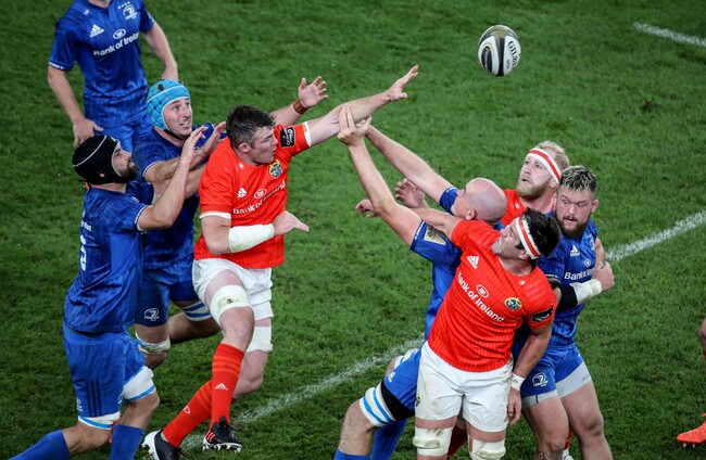 Doris competes against Billy Holland at the line-out. Dan Sheridan / INPHO