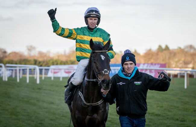 Mullins, saddling his third winner on the card, said: “I thought he ran very well against a horse that had already had a run in Navan. If he’d won we’d be coming here anyway so rather than running in another beginners chase, I thought let him have a crack at a good prize.