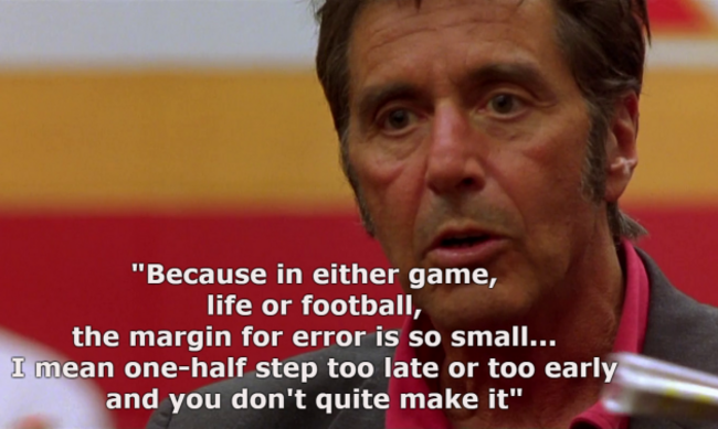 It has, after all, been parroted in every sports dressing room the length and breadth of the country but the lessons from Pacino’s soliloquy extend far beyond the arena of sports.