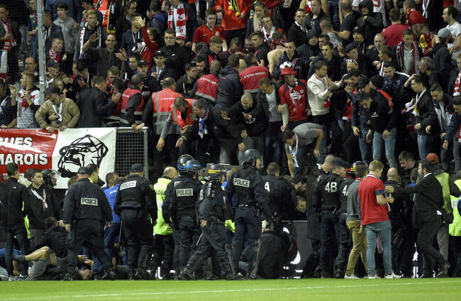 Medics tend to wounded Lille' supporters. AP / PA Images