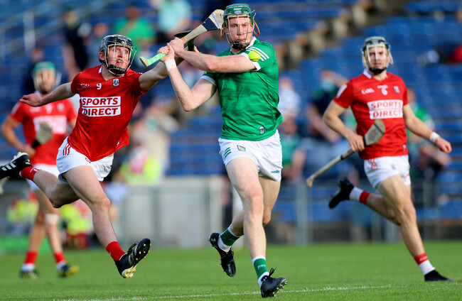 Cork's Shane Barrett and Limerick's Dan Morrissey. Lorraine O’Sullivan / INPHO