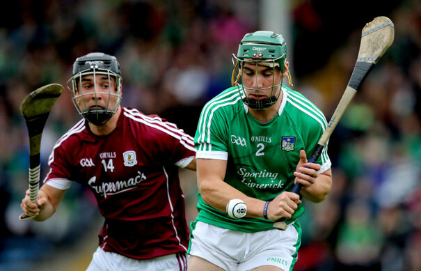Galway's Dan Nevin and Limerick's Robbie Hanley. Ryan Byrne / INPHO