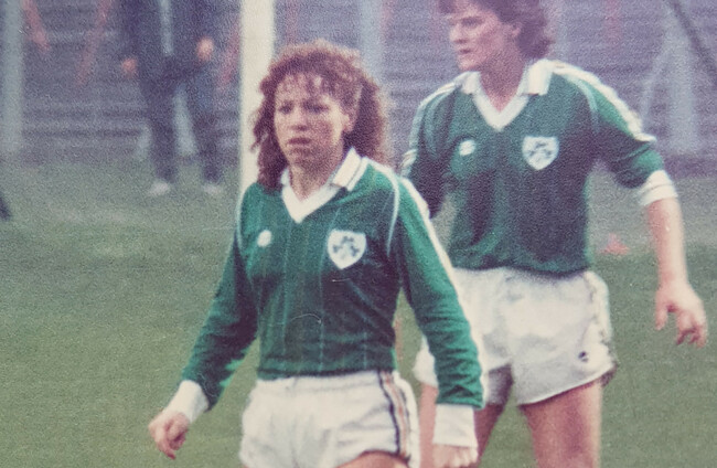The tough-tackling attacking full-back had earned over 20 caps in a 13-year period with the Irish team, at a time where international matches were more sporadic and there were no qualifiers, with the first official Women’s World Cup not taking place until 1991. She made her debut against Northern Ireland in 1973 on a pitch just opposite the Red Cow Roundabout that is now home to Bluebell United.