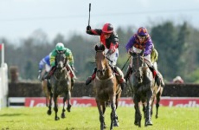 Earlier, Get Me Out of Here won the Keelings Irish Strawberry Hurdle, seeing off the challenge of favourite Oscars Well with Tony McCoy on board.
