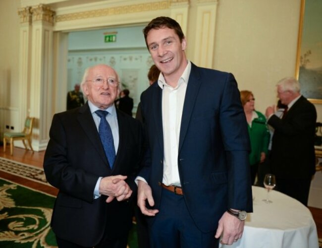 David Wallace (pictured here with President Michael D Higgins) played for the Lions in 2001 and 2009. He is a board member with Special Olympics Ireland – @SOlreland – who are celebrating 10 years since the games were staged in Ireland.