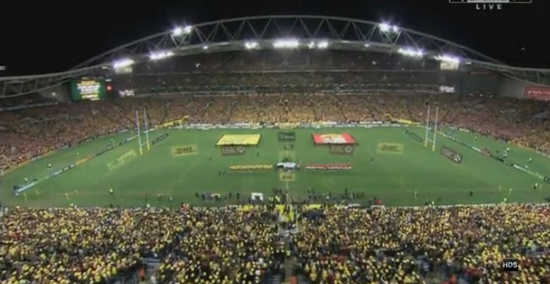 Here’s the scene inside the stadium as the Aussie anthem is belted out: