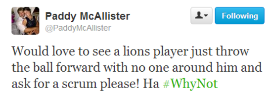 Surprised Sir Clive doesn’t pop one on himself, the Lions saboteur!