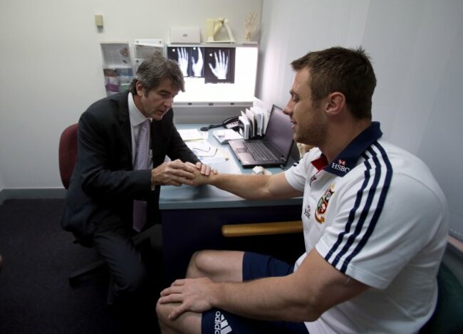 Dr Pete Rowan checks Bowe’s healing hand in Melbourne. (©INPHO/Dan Sheridan)