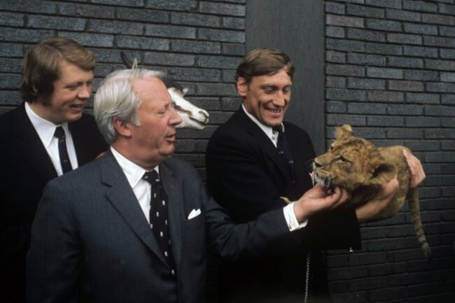 Edward Heath, Fiji the lion cub and McBride in ’74. (PA Archive)