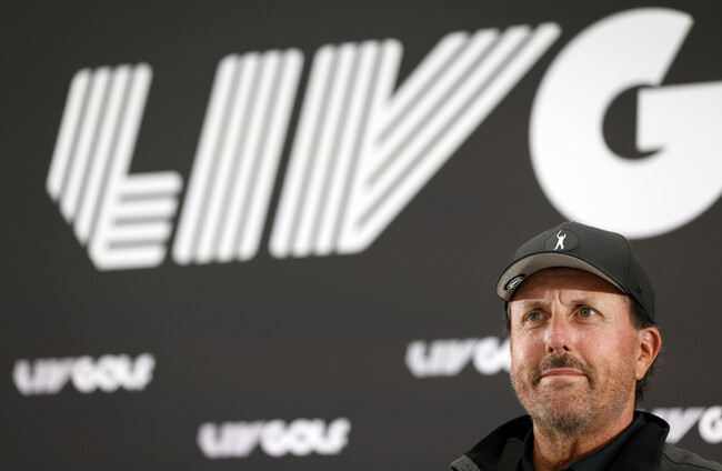 Phil Mickelson pictured at a LIV Golf press conference. PA